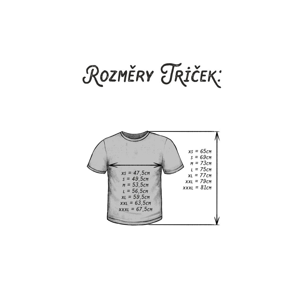 Před objednáním si triko porovnej v tabulce rozměrů se svým oblíbeným trikem, co máš doma.